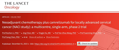 [1] Kezhen Li, Jing Chen, Yingjie Hu, Yan-Zhou Wang, Yuanming Shen, Gang Chen,Jihui Ai, Ding Ma,Chaoyang Sun,et al.Neoadjuvant chemotherapy plus camrelizumab for locally advanced cervical cancer (NACI study): a multicentre, single-arm, phase 2 trial.Lancet Oncol. Published:December 01,2023. DOI:http://doi.org/10.1016/S1470-2045(23)00531-4